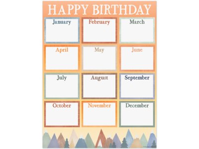 This convenient, useful chart decorates as it ensures your students’ special days don’t go unnoticed! Delightfully designed with a warm color palette and a gradient background, the poster highlights 12 months in a centralized space to record and celebrate classroom birthdays. Poster includes reproducibles on back; measures 17" x 22".