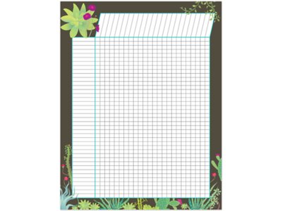 This beautifully designed incentive chart is great for keeping track of students’ progress and encouraging self-management skills—in style! The on-trend chart features a border of colorful flowers and cacti against a chocolate-brown background and includes space for 40 student names and 24 assignments. Use it to stay on task and track attendance, progress, goals, classroom objectives, assignments and more. Chart measures 17" x 22" and has reproducible activities on back.
