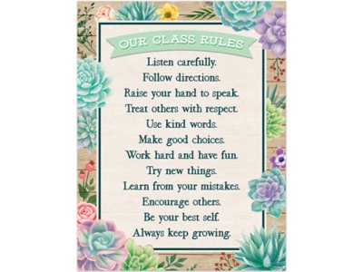 A convenient, useful poster that decorates as it educates! This 17" x 22" wood- and floral-inspired poster features important reminders about classroom rules and philosophies, plus lessons and activities on back.