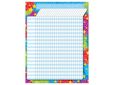 This brightly colored, stars & swirls-themed incentive chart is versatile for all ages and many uses at home and at school! The 17" x 22" chart includes space for 36 student names and 25 assignments and features reproducible activities on back.