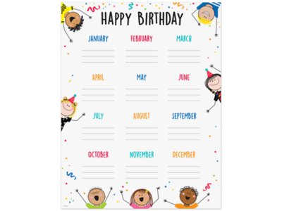 Celebrate birthdays throughout the year—with a fun birthday poster featuring every month and space to write students’ names! Use it to decorate bulletin boards, hallways, doors and common areas! Poster measures 17" x 22".