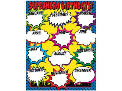 Celebrate birthdays throughout the year—with a handy, superhero-themed birthday poster featuring every month and space to write students’ names! Use it to decorate bulletin boards, hallways, doors and common areas! Poster measures 17" x 22" and includes activities on back.