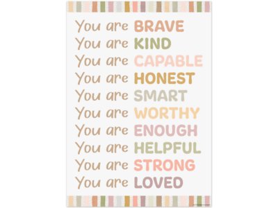 Accent walls or displays with an engaging poster that’s a great addition to any classroom decor! The poster features a border of alternating stripes in warm, inviting colors and a powerful message that reminds students that they are kind, smart, helpful and more! Includes reproducibles on back; measures 13 5/8" x 19".
