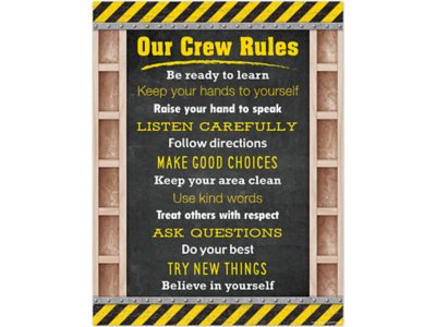 A convenient, useful poster that decorates as it educates! This 17" x 22" rugged, construction-themed poster features important reminders about classroom rules and philosophies, plus lessons and activities on back.