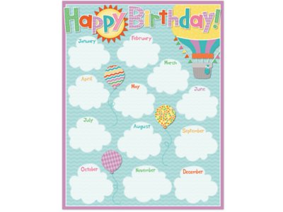 Liven up your classroom with a birthday poster featuring a bold, colorful design—a great way to display birthdays and an excellent reference resource for students and teachers! Poster measures 17" x 22".