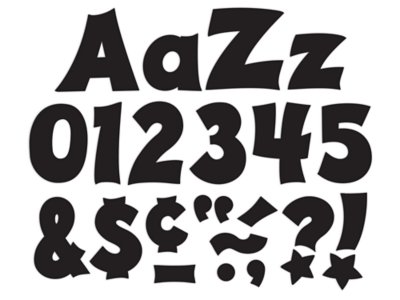 These black die-cut punch-outs are convenient, reusable and easy to use! Great for student work displays, bulletin boards, signs, banners, newsboards, learning activities, labeling and much more, the fade-resistant pieces feature Contemporary Friendly font on durable cardstock. Set includes 50 uppercase letters, 82 lowercase letters, 21 numerals 0-9, 44 punctuation marks, 28 Spanish accent marks and a blank sheet to make additional characters; the largest pieces measure 4".