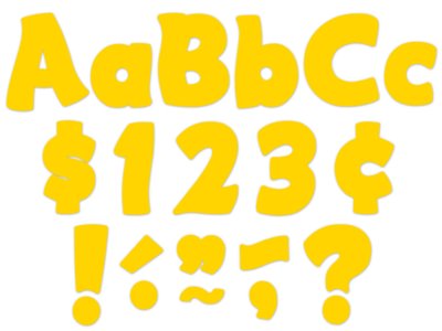 Brighten your classroom displays with these vibrant gold punch-outs! Perfect for bulletin boards, classroom centers, signs, banners and other displays, the punch-outs are coated for durability, so they can be used again and again. Pack includes 208 pieces, including upper- and lowercase letters, numbers, punctuation marks and Spanish accent marks; largest pieces measure 4".