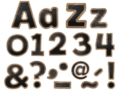 Create eye-catching messages and fun classroom displays with these time-saving prepunched pieces! With a weathered wood and black chalkboard look, the punch-outs add a stylish touch to any classroom. You get a pack of 219 pieces, including uppercase and lowercase letters, numbers, punctuation marks and symbols; the largest pieces measure 4".