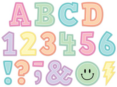 These self-adhesive letters, featuring a bold block font in cool pastel colors, will enhance your classroom decor with their dynamic, textured look. They are removable and repositionable, making it easy to create bulletin boards, stations, teaching aids and labels without the hassle. Plus, they’re perfect for creating display boards for projects, presentations, science fairs and more! Made from durable materials, the self-adhesive letters ensure long-lasting displays that withstand daily classroom use. Their easy-to-peel backing makes them a breeze to apply—no more struggling with crooked letters. Pack contains 326 self-adhesive pieces, including uppercase letters, numbers, punctuation marks, accents and symbols; pieces measure 2" tall.