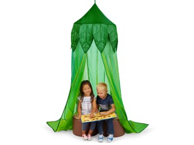 Our nature-themed canopy creates an inviting place for children to take a break and enjoy a book! Featuring tiebacks at the opening and a handy tie on top, the mesh nylon canopy can be attached to any sturdy ceiling hook. Seats sold separately.