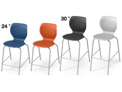 Our extra-tall stacking stools elevate the look of any space! Perfect for standing-height tables, the steel-frame stools feature an ergonomic seat with a flexible yet supportive back—fully molded from durable polypropylene that easily wipes clean. Plus, each has a footrest on 3 sides for added comfort and legs with non-marking, self-leveling glides. You can even stack up to four stools at once to save space! Measurements given are for seat heights.