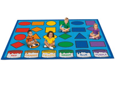 Accent your classroom with comfy carpets that introduce colors & shapes! Ideal for classroom management, organized classroom seating and providing the perfect setting for classroom activities, each carpet gives children a concrete way to build color-recognition and shape-identification skills—as they sit on the yellow triangle, jump on the green square, rest on the red rectangle and more! Each is made of soft, soil-resistant nylon and comes with a guide.