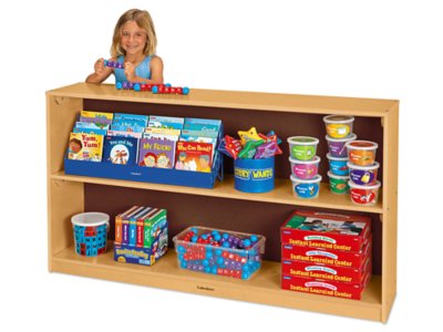 Store tons of materials quickly and easily—with a spacious storage unit that features two extra-wide shelves! Specially designed with reinforced support beams, each super-sturdy shelf is built to hold all types of classroom materials in a variety of sizes and weights. Plus, the unit has a super-wide design and hardboard backing—with smooth surfaces and eased corners for added safety!