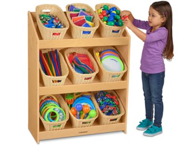 Store and display manipulatives, craft supplies and tons of other materials in our stable birch center! The durable center features 3 slanted shelves that make it easy for kids to see and access materials. Ideal for use with our Dishwasher-Safe Baskets (sold separately).