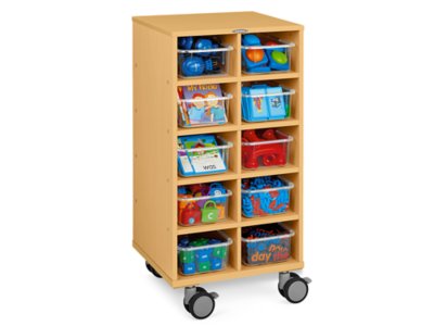 This super-versatile unit makes it a cinch to store tons of classroom supplies—and keep them right within reach! Perfect alone or with our clear-view bins (sold separately), our heavy-duty laminate unit features 10 spacious cubbies to organize manipulatives, art materials and so much more. Plus, the center rolls on 4" locking casters, so you can move it anywhere you need it.