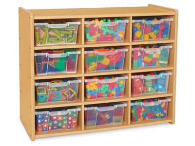For all your big storage needs, this multipurpose unit is just the thing! Featuring 12 spacious cubbies that work great alone or with our easy-tote, See-Inside Bins (sold separately), the heavy-duty unit can hold everything from children’s belongings to art supplies, manipulatives and so much more. Plus, the rugged, wipe-clean laminate unit has smooth, rounded corners for safety and protective edgebands for durability.