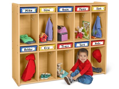 Now you can keep all your students’ belongings and important papers for their parents together in one convenient location! Our rugged center features storage space for 10 children, including 10 roomy cubbies, each with a sturdy, rounded hook for hanging a backpack or jacket. A shelf above each cubby works perfectly alone or with our Heavy-Duty Storage Trays (sold separately) to provide the ideal place for schoolwork, parent notices, art projects and more. With wipe-clean laminate surfaces and safe, rounded corners.