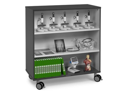 Our super-sturdy unit offers ample storage for supplies, books, bins and more—while elevating any space with a modern, streamlined look! It features 3 spacious shelves for keeping everything neat and within reach…and rolls on heavy-duty, 4" locking casters for convenient transport throughout the classroom. Plus, it has a full-steel frame and is made from rugged wipe-clean laminate to withstand years of daily use.