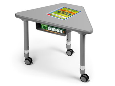 Use our wedge desk alone for independent work…or put several together to invite collaboration! The gray desktop is surrounded by a thick vinyl edgeband, with rugged laminate on both the top and bottom to last through years of use. Plus, the desk rolls on 3 adjustable steel legs with smooth-rolling, locking casters…and there’s even a built-in box on the underside to neatly store books, papers and more! Easy assembly.