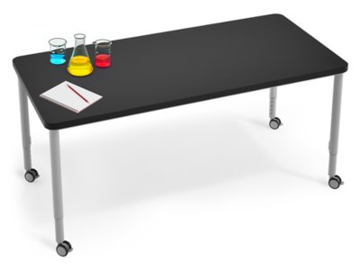 Designed for contemporary science environments, our rugged table provides the perfect workspace for group projects, experiments and more! Featuring a spacious tabletop made from durable laminate on the surface and underside—with chemical- and moisture-resistant Wilsonart® Chemsurf® laminate on top that can withstand temperatures up to 270°F—plus a super-sturdy steel frame and 4 adjustable steel legs that roll on tough locking casters, the table offers superior strength, stability and flexibility—in a timeless, sophisticated design that complements any next-generation science space. Easy assembly.
