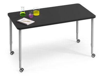 All the benefits of our Modern Edge Mobile Science Table—in an extra-tall version that invites students to sit or stand as they collaborate on lab projects, classwork and more! The roomy tabletop is made from Wilsonart® Chemsurf® laminate to resist damage from moisture, chemicals and temperatures up to 270°F…with tough laminate on the underside for added durability and strength. Plus, the steel-frame table rolls on 4 height-adjustable steel legs with locking casters—offering convenient mobility anywhere! Easy assembly.