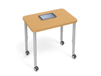 Maximize collaboration with sophisticated desks that effortlessly roll wherever learning happens! Each desktop has attractive rounded corners, a tough vinyl edgeband and durable, wipe-clean laminate on the surface and underside. Plus, the ultra-sturdy desks have steel frames and legs, with locking casters for easy transport…and they’re height-adjustable to accommodate every student. Easy assembly.