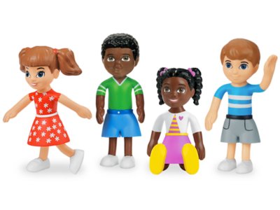 Perfectly sized for our Treehouse Imagination Builders, these flexible plastic dolls have bendable arms and legs—so they’re fully poseable! Set includes 4 easy-clean dolls; largest measures 3 1/2" tall.