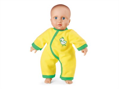 Our darling doll is super-detailed and incredibly lifelike, yet tough enough for classroom use and machine-washing! Made of molded vinyl and soft cloth, the doll has movable arms and legs and a squeezably soft body. Plus, the hook & loop outfit is interchangeable with other Lakeshore Washable Baby Dolls. Doll measures 11" in length.