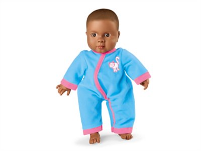 Our darling doll is super-detailed and incredibly lifelike, yet tough enough for classroom use and machine-washing! Made of molded vinyl and soft cloth, the doll has movable arms and legs and a squeezably soft body. Plus, the hook & loop outfit is interchangeable with other Lakeshore Washable Baby Dolls. Doll measures 11" in length.