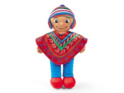 With unique embroidered features and beautiful, traditional attire, our doll gives children an up-close look at Peruvian culture! The soft-sewn doll has a permanently attached outfit and is fully machine-washable…and super-cuddly! Doll measures 12" tall.