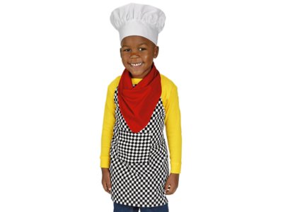 Children can’t wait to whip up pretend meals in our kitchen-ready chef costume! The realistic, easy-on costume features a checked apron with hook & loop closures that make dress-ups a breeze, plus an adjustable chef’s hat and cute kerchief. The school-quality costume fits children ages 3 to 6 years.