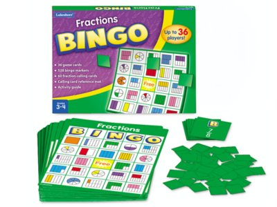 This easy-to-play bingo game gives students a super-fun way to master fractions! It’s played just like traditional bingo, only when you call out a fraction, kids search their game cards for its graphic representation! Game includes all the materials you need for up to 36 players.