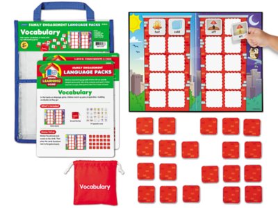 We’ve packed fun vocabulary practice into this take-home pack—with an engaging game both children and parents will love! The pack includes everything families need to play a hands-on, vocabulary-boosting game. Plus, the pack comes with a simple, step-by-step instruction card in English and Spanish…so busy families can jump right in! The pack includes a game board, 24 opposite cards and a drawstring bag—all in a sturdy vinyl pouch. Game board measures 10 1/2" x 14".