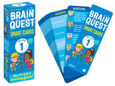 Curriculum-based but infused with a spirit of fun, this loved-by-kids and approved-by-teachers card set proves that it’s fun to be smart! The fast-paced question-and-answer game challenges first graders’ minds—reinforcing classroom learning in a truly engaging way. Covering reading, language arts, math, science and more, the set includes 2 full-color, double-sided fan decks—for a total of 150 cards and 750 questions and answers—in a reusable flip-top storage box. Each card measures 2 3/4" x 7 1/2".