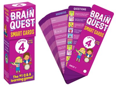 Curriculum-based but infused with a spirit of fun, this loved-by-kids and approved-by-teachers card set proves that it’s fun to be smart! The fast-paced question-and-answer game challenges fourth graders’ minds—reinforcing classroom learning in a truly engaging way. Covering math, science, language arts, history, geography and more, the set includes 2 full-color, double-sided fan decks—for a total of 150 cards and 1,500 questions and answers—in a reusable flip-top storage box. Each card measures 2 3/4" x 7 1/2".