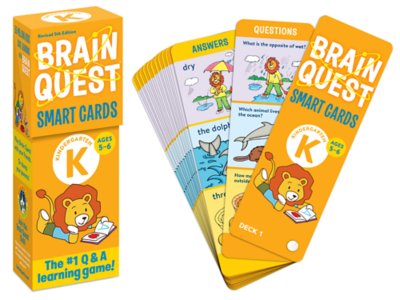 Curriculum-based but infused with a spirit of fun, this loved-by-kids and approved-by-teachers card set proves that it’s fun to be smart! The fast-paced question-and-answer game challenges kindergartners on things they need to know to get a smart start—reinforcing classroom learning in a truly engaging way. Covering reading, language arts, math, science and more, the set includes 2 full-color, double-sided fan decks—for a total of 150 cards and 300 questions and answers—in a reusable flip-top storage box. Each card measures 2 3/4" x 7 1/2".