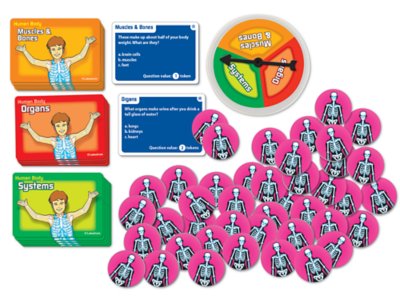 Kids learn all about the human body—as they race to answer skill-building science questions! Our fun-filled game canister has a spinner built right into the lid…and comes with everything children need to play—including themed game tokens and 60 self-checking question cards written in standardized test format. Players just spin to answer each fascinating science question…and collect game tokens for each correct answer!