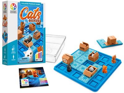 Think inside the box with this “purrfect” puzzle game that invites kids to find out if they’re as clever as a cat! The sequential logic game challenges children to move the puzzle pieces one by one until all the cats are in boxes. Comes with a portable game board for fun on the go. Includes a game board with a lid, 5 cats, 4 puzzle pieces, and a guide with 60 challenges and solutions; board measures 6" x 6".