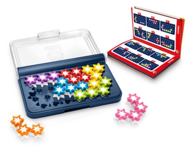 Kids prove their brain skills are out of this world as they solve puzzles by placing stellar puzzle pieces on a game grid to create a colorful galaxy! Can they make all the pieces fit? The game is great for developing cognitive skills like concentration, logic and problem solving. You get a game grid with a transparent lid, 7 puzzle pieces and corresponding pegs, and a booklet with 120 multilevel challenges and solutions. Game grid measures 3 1/2" x 5 1/2". For 1 player.