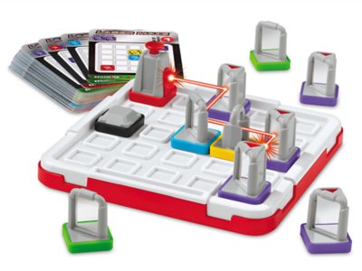 Challenge yourself or your friends with this action-packed laser game! Simply select one of the leveled challenge cards to set up each maze, decide where to place mirrors & other pieces—and then aim the laser to hit the targets! Includes 60 challenge cards. Game grid measures 7".