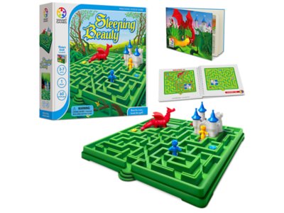 Beat the maze, break the spell! Kids help rescue Sleeping Beauty by navigating through a maze to the castle…or play as the dragon! The player simply places the maze pieces on the game board as shown on the challenge and solves the puzzle by finding the shortest pathway through the maze. It’s great for developing cognitive skills like planning, problem solving, spatial awareness and visual perception. You get a game board, 4 maze puzzle pieces, 3 play figures, a castle, a picture storybook, and a booklet with 60 multilevel challenges and solutions. Game board measures 10 1/4". For 1 player.