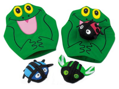 Children build confidence and coordination as they play no-fail games of catch! Soft, hook & loop “bug balls” stick like magic to the entire surface of our cute froggy mitts—so it’s easy for kids to make a catch every time! Double-sided, machine-washable mitts fit both righties and lefties. Set includes 3 balls and 2 mitts.
