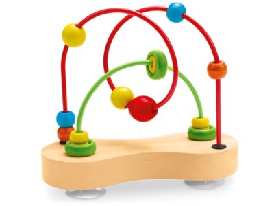 Zig, zag, zoom—there’s always a new way to scoot around this endless maze! Use the wooden beads to help tots identify colors and learn to count—you can even introduce early language skills by using descriptive words like “up,” “down,” “over” and “around!” Four sturdy suction cups secure the wooden base to smooth surfaces. Maze measures 8 1/2" x 7 3/5" x 3 1/2".