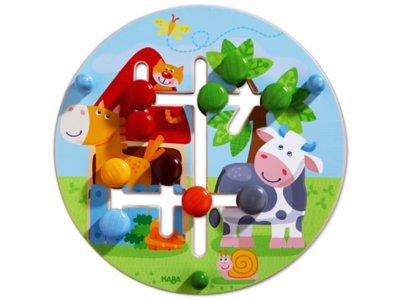This double-sided board is a wonderful way to teach color and shape recognition! One side of the wooden board features a super-cute farm scene, while the other features four geometric shapes. Kids just slide the 10 chunky wood pegs along the path to match up the colors to the images on the board! Wipe-clean board measures 8 1/2".