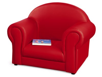 Our toddler-sized chair is low to the ground, super-comfy…and built to last through years of busy use! Chair features a sturdy wooden frame and extra-thick foam padding, all covered in wipe-clean vinyl for added durability and easy care.