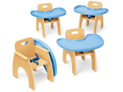 An easy-clean space to establish positive mealtime routines! Specially designed chairs and convenient, removable trays help turn mealtimes into enjoyable social experiences for children and their caregivers. The chair seats measure 9 3/4"w x 9"h; the trays measure 22 1/2" wide.