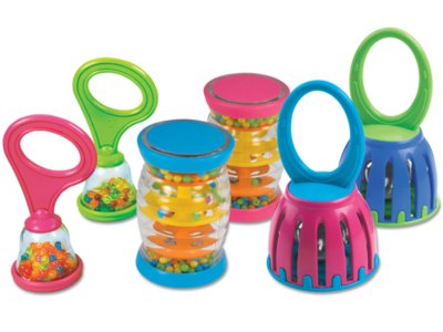 Babies just can’t get enough of our super, shakable rhythm set! The 6 toddler-safe plastic instruments come in 3 easy-to-play styles—rattles, rainsticks and jingling hand bells…all perfectly sized for little hands. Bells measure 4 3/4".