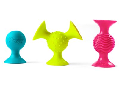 Here are the ultimate keep-their-attention rattles—sure to inspire loads of sensory stimulation and endless giggles! The fun little toys are brightly colored…embossed with wavy ridges, raised dots or a smiley face…and they rattle when little ones shake them. Plus, they feature 1-3 suction cups, so they stick to any smooth, nonporous surface! The 3 durable, dishwasher-safe pieces are made of food-grade, BPA-free silicone, so they’re safe for teething tots. The pink rattle measures 2" x 4".