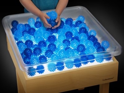 Little ones can’t wait to get their hands on our soft, spiky balls—designed to illuminate on light tables! Perfect for touching, scooping and exploring, these translucent balls take sensory play to a fun new level. Plus, they’re toddler-safe and fully washable! You get 80 plastic balls in 2 shades of blue; each measures 2". Light table and tray sold separately.