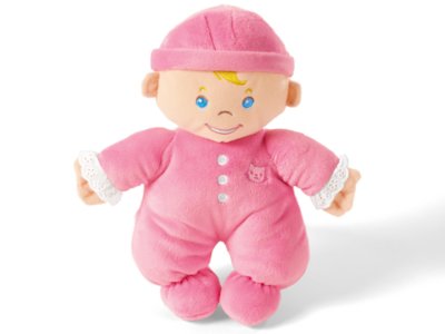 This cuddly doll is ideal for little ones! The doll features super-soft clothing and permanent, sewn-on details, so it’s incredibly soft and totally safe—even for toddlers. Machine-washable doll measures 11" in length.